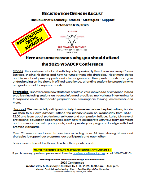 TCA of WA is dedicated to providing training and support to the many therapeutic courts in Washington State.